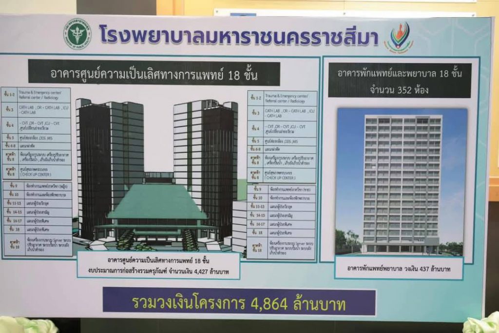 “รพ.มหาราชนครราชสีมา” ทุ่ม 4,864 ล้าน สร้างศูนย์ความเป็นเลิศทางการแพทย์ 18 ชั้น รองรับการบริการทางการแพทย์ชาวอีสาน แม่ข่ายของเขตสุขภาพที่ 9 ของ 4 จังหวัดอีสานใต้ “นครชัยบุรินทร์” ได้แก่ นครราชสีมา ชัยภูมิ บุรีรัมย์และสุรินทร์ ที่ดูแลสุขภาพประชาชนประมาณ 6.7 ล้านคน พร้อมอาคารพักแพทย์และพยาบาล 18 ชั้น 352 ห้อง เพื่อรองรับบุคลากรทางการแพทย์ กำหนดสร้างเสร็จทั้ง 2 โปรเจ็กต์ปี 2573