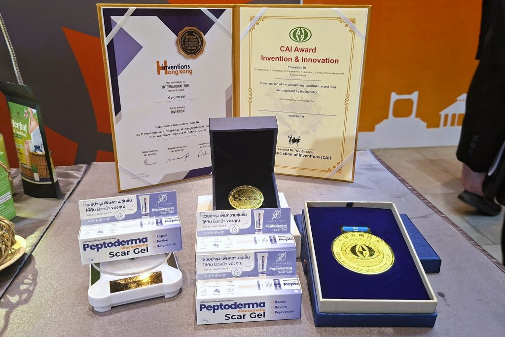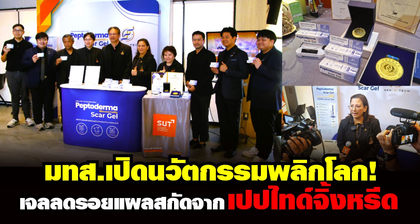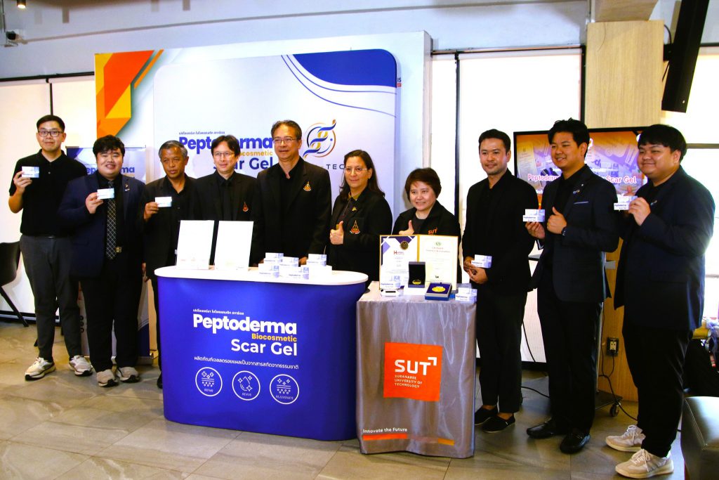“มทส.โคราช” เปิดตัว “PEPTODERMA BIOCOSMETIC SCAR GEL” เจลลดรอยแผลเป็นคุณภาพสูง สารสกัดจากเปปไทด์จิ้งหรีด ครั้งแรกของไทย คว้า 2 รางวัลเหรียญทอง จากการแข่งขันประกวดนวัตกรรมระดับนานาชาติในงาน AEII 2025 ณ ฮ่องกง พร้อมต่อยอดเป็นนวัตกรรมเวชสำอางมีศักยภาพเชิงพาณิชย์สูง ในตลาดระดับประเทศและนานาชาติ